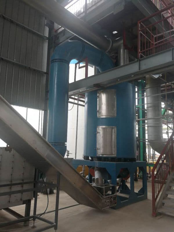 物料沿螺旋床自下而上作圆周运动的同时,自身也产生跳跃,从而增加了物料与热风的接触,增强了干燥效果。